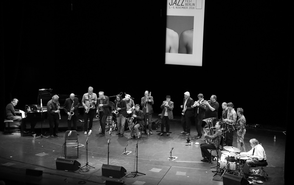 Globe Unity Orchestra 2016 at Jazzfest Berlin by Kazue Yokoi Piano Duets: Aki Takase, Alex von Schlippenbach Schlippenbach Trio ( Evan Parker, Alex von Schlippenbach, Paul Lytton )Photo by Caroline Forbes LOK.03 w/ Aki Takase, DJlllVibe